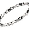Bracciale bikkembergs da uomo con maglie bicolore acciaio/nero. Al centro sono incastonati 5 diamantini bianchi di 0.05 Pt.tot. Misura regolabile con maglie estraibili.