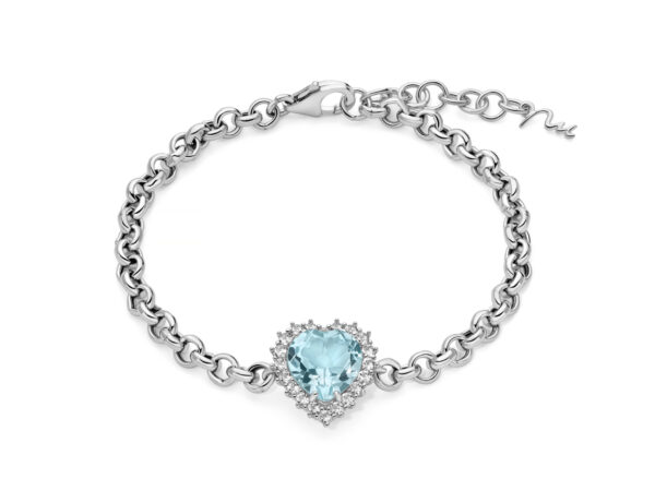 Bracciale in argento simbolo degli affetti più preziosi e romantici. Il centrale con Gemma del Cielo a cuore circondata da topazi bianchi illumina questo gioiello in argento 925. Un pensiero prezioso per ricordare ai tuoi cari che sono amati.