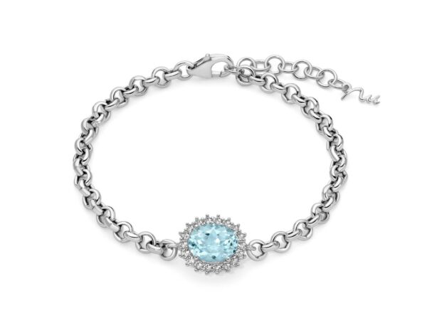 Bracciale Gemma: Topazio azzurro naturale taglio ovale 8×10 mm; nr. 18 Topazio bianco naturale taglio brillante 1,75×1,75mm