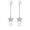 Orecchini Da Donna Di Luca Barra. Orecchini In Acciaio Con Stelle E Glitter Bianco. Lunghezza: 4,8 Cm. La Referenza È Ok1054