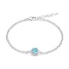 Bracciale catena della collezione Miluna Gemma del Cielo da donna. Colore: argento e azzurro. Bracciale in argento 925‰ composto da una catena rolo’ forzatina e un prezioso Topazio naturale azzurro a forma di cuore, taglio Briolette 6×6 mm di caratura 0,45. Chiusura a moschettone. 100% Made in Italy.