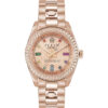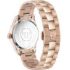 Orologio solo tempo da donna della collezione queen di Philipp Plein. Orologio solo tempo con cassa realizzata in acciaio inossidabile di colore ip oro rosa. Dimensione cassa: 36 mm. Il quadrante è oro rosa. Il bracciale è realizzato in banda di metallo di colore ip oro rosa. Il movimento è quarzo 3 h. La resistenza all’acqua è 5 atm. La referenza è pwdaa0821
