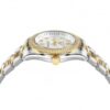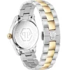 Orologio solo tempo da donna della collezione queen di Philipp Plein. Orologio solo tempo con cassa realizzata in acciaio inossidabile di colore bicolore. Dimensione cassa: 36 mm. Il quadrante è beige. Il bracciale è realizzato in banda di metallo di colore bicolore. Il movimento è quarzo 3 h. La resistenza all’acqua è 5 atm. La referenza è pwdaa0521