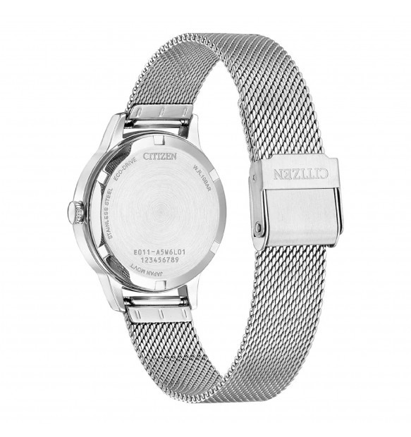 Orologio da donna del brand Citizen della collezione Lady Dazzling. Orologio solo tempo eco drive con cassa in acciaio diametro cassa 31mm e vetro minerale. Quadrante rosa con numeri romani e bracciale in acciaio maglia milano. Movimento eco drive a carica luce con riserva di carica di 6 mesi, resistenza all’acqua: 10 ATM. Datario: sì. La referenza è EW2621-75X