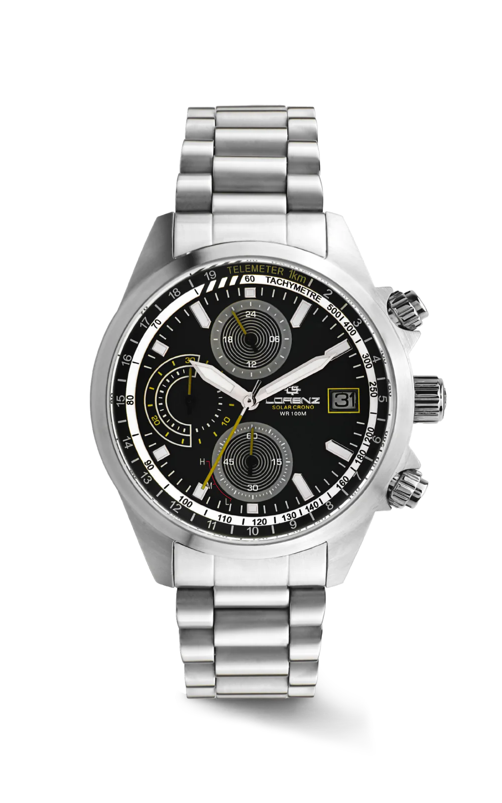 Lorenz Solar Chrono, quando stile e tecnologia si uniscono per offrire una combinazione in perfetto equilibrio. La cassa è realizzata in acciaio inossidabile 316L dal diametro di 42 mm, con corona e fondello a vite per assicurare un’impermeabilità fino a 100 metri. Il movimento al quarzo con carica solare Epson VR43 alimenta questo orologio senza la necessità di sostituire mai le batterie e assicurando fino a tre mesi di autonomia con una sola ricarica solare. Il quadrante a ore 6 indica la carica residua quando non è in funzione il cronometro. L’orologio è venduto con un bracciale in acciaio con chiusura sportiva solida e un secondo cinturino NATO colorato, consentendovi di cambiare il look del tuo orologio a seconda delle occasioni.